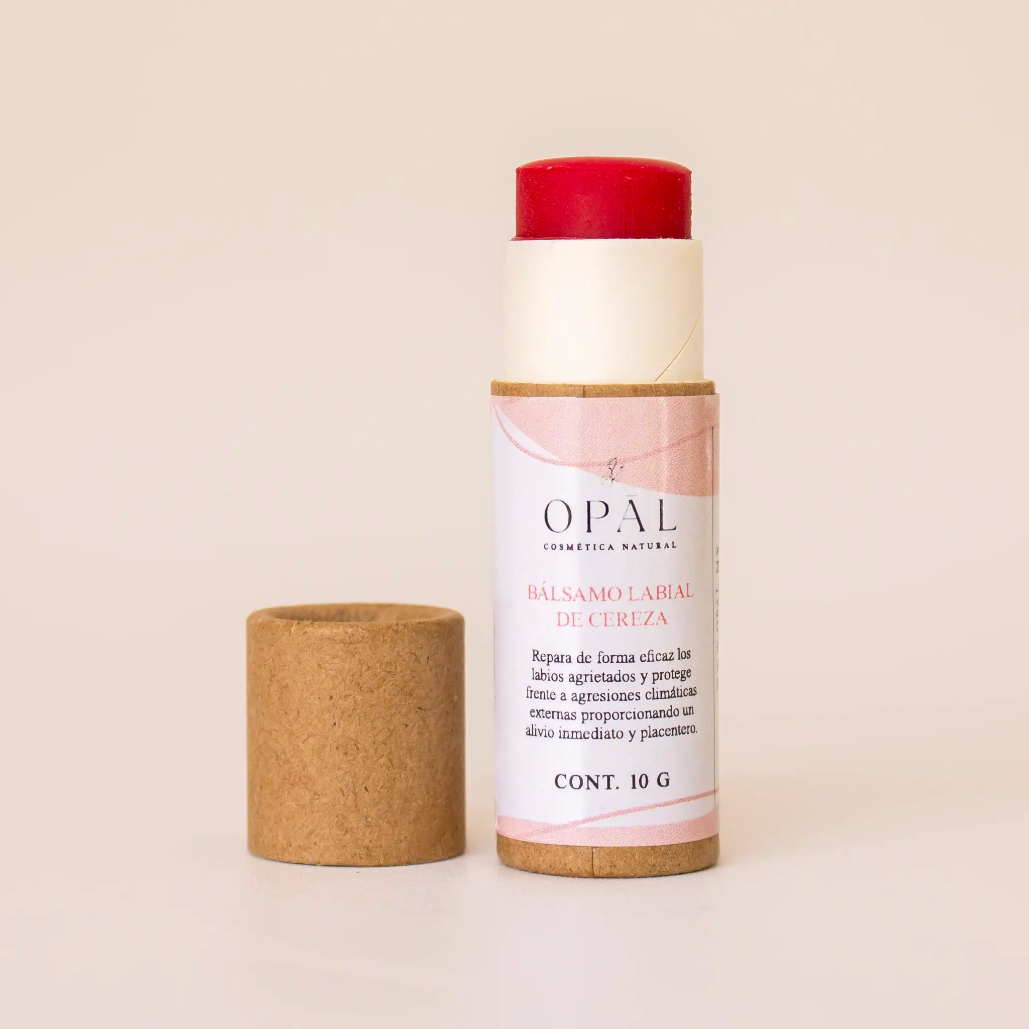 Ingredientes: Cera Candelilla, Aceite de Ricino, Manteca de Karité, Aceite de Coco, Aceite de Almendras, Extracto de Cereza, Sabor a Cereza, Vitamina E, Pigmento.