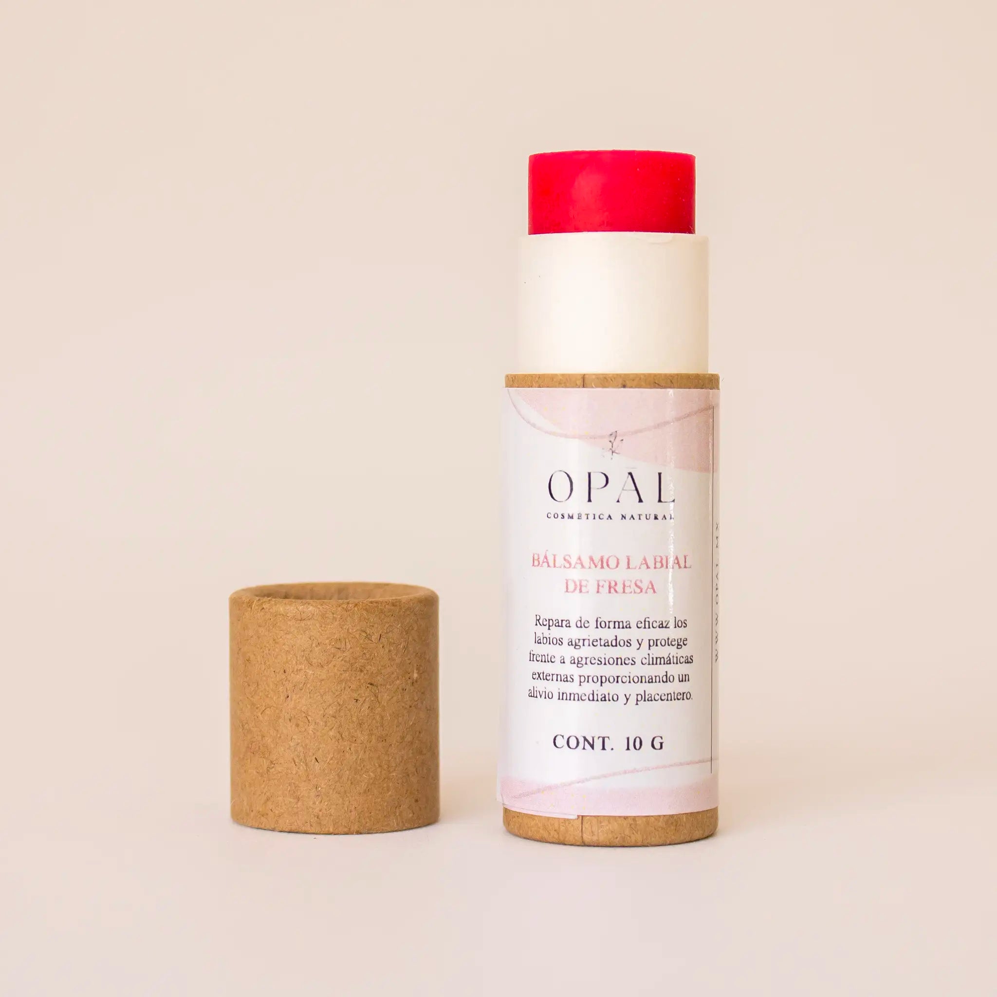 Ingredientes: Cera Candelilla, Aceite de Ricino, Manteca de Karité, Aceite de Coco, Aceite de Almendras, Extracto de Fresa, Sabor a Fresa, Vitamina E, Pigmento.