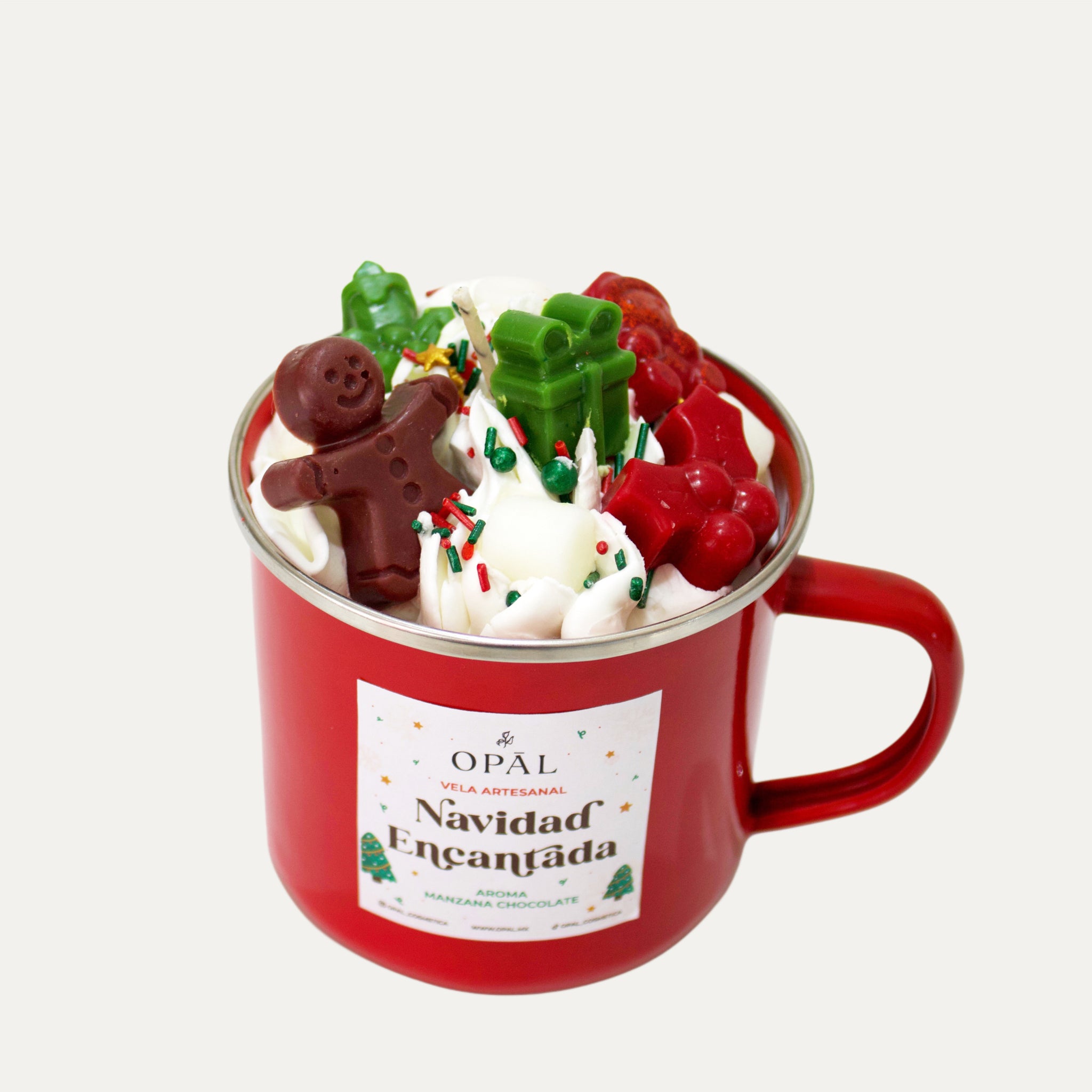 Una mezcla cálida y festiva con aroma a chocolate y manzana especiada. Hecha con cera de soya natural y decorada con figuras navideñas, esta vela convierte cualquier espacio en un rincón lleno de magia, amor y espíritu navideño.